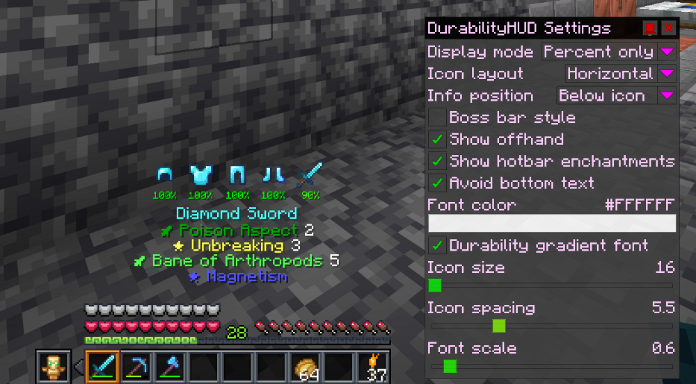 - Shows block count on crosshair